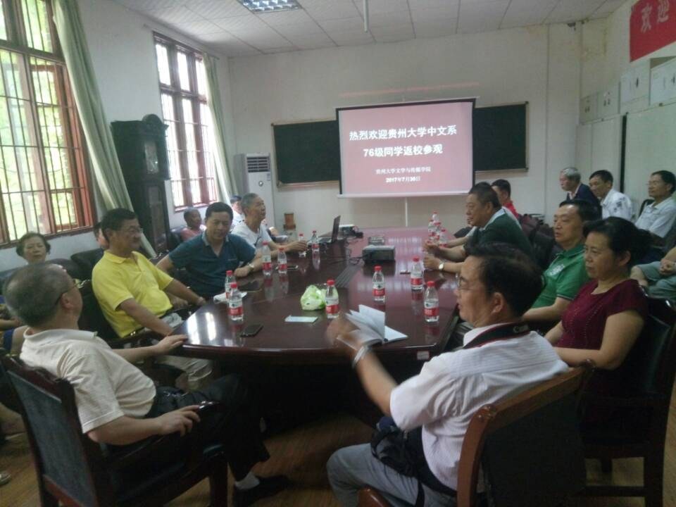 溪山如黛,岁月如梭。2017年7月30日下午,当犯着困意的人们从午睡中醒来,贵州大学人文楼已经敞开怀抱,迎接一批校友归来。他们是贵州大学中文系76级的学生,这一批学生很特殊,因为他们是新中国最后一级工农兵大学生。特殊的时期也成就了优秀的他们,这个30多人组成的返校队伍,早已经成为各个行业的骨干力量。今天重回校园,正是循着家的方向而来。