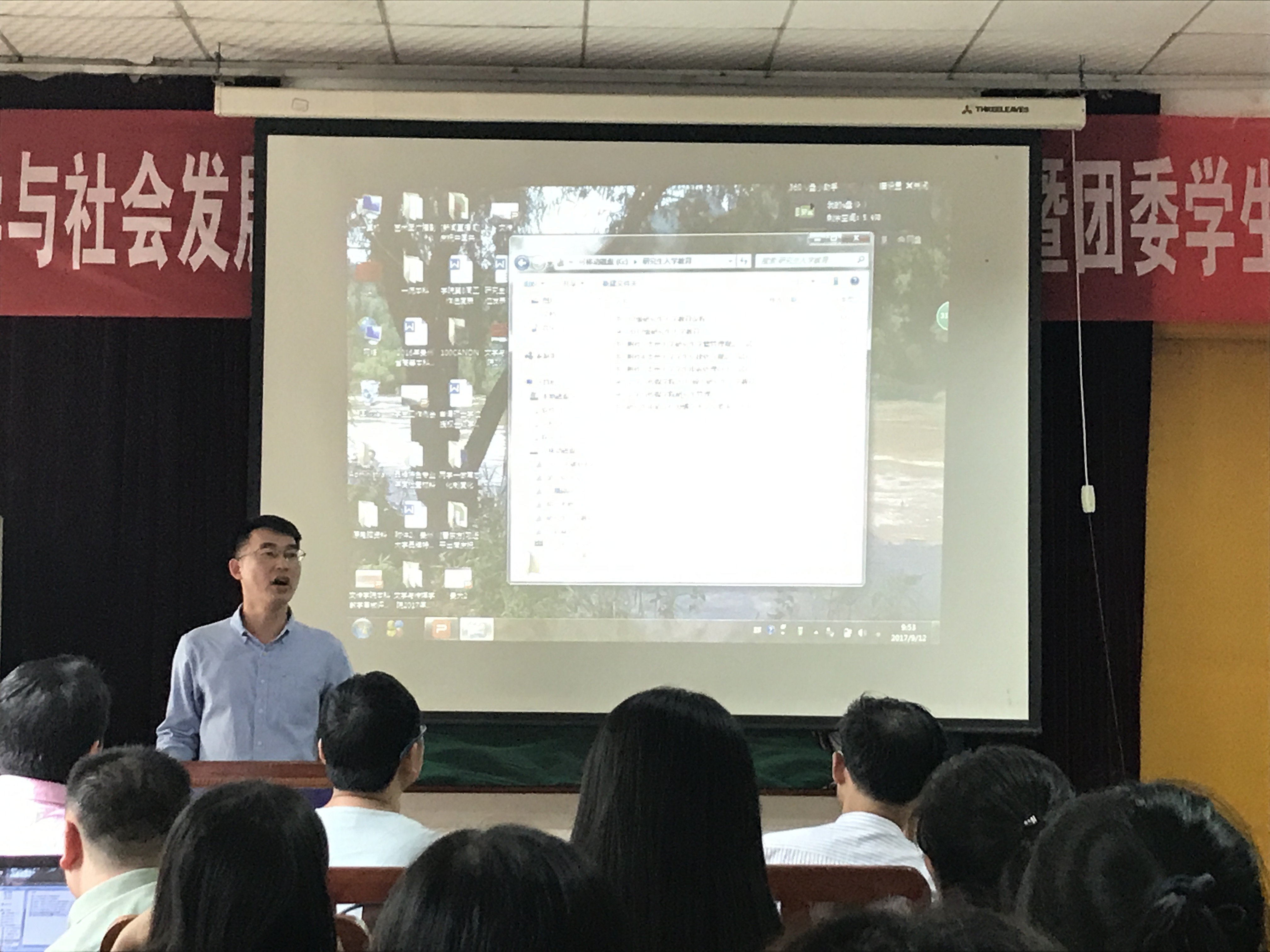 最后,刘振宁副院长为此次会议进行总结,并以“坚守初心 脚踏实地 成就理想”为题勉励全体2017级研究生新生,希望同学们在学术探究、能力养成中加强价值塑造,牢记初心,奋力前行,做到不唯书、不唯上、只唯真、只唯实,潜心学习、协作共进、勇于创新,用自己的知识和智慧照亮前程,用辛勤和汗水谱写人生新华章。