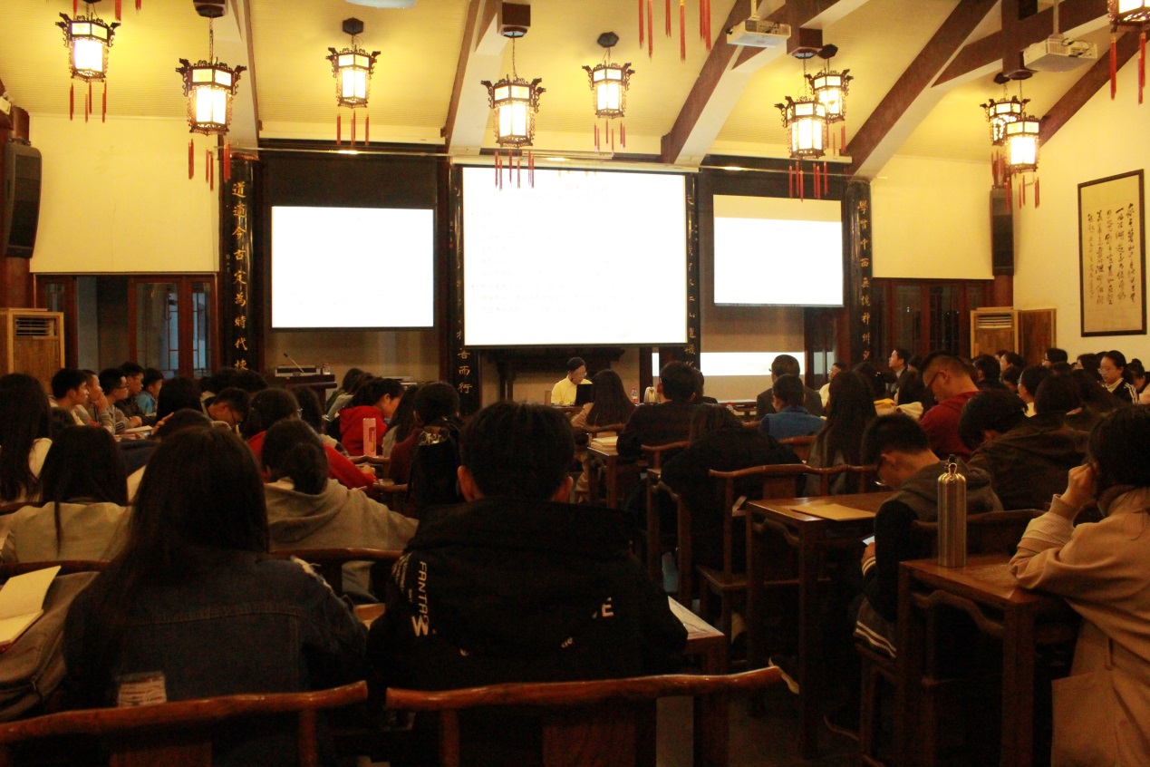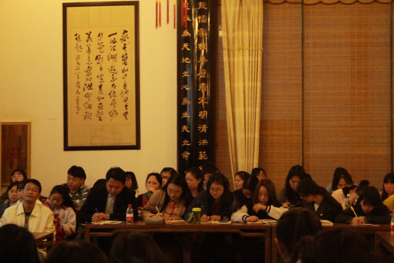 讲座由文学与传媒学院中文系主任赵永刚副教授主持,文学与传媒学院黄海教授、张军教授、胡晓军副教授、李青副教授、明月熙副教授、付星星副教授、吕维博士,阳明学院张劲松副教授、刘凤霞副教授以及文学与传媒学院、历史与民族文化学院(中国文化书院)等学院研究生、本科生100余人参加讲坛。