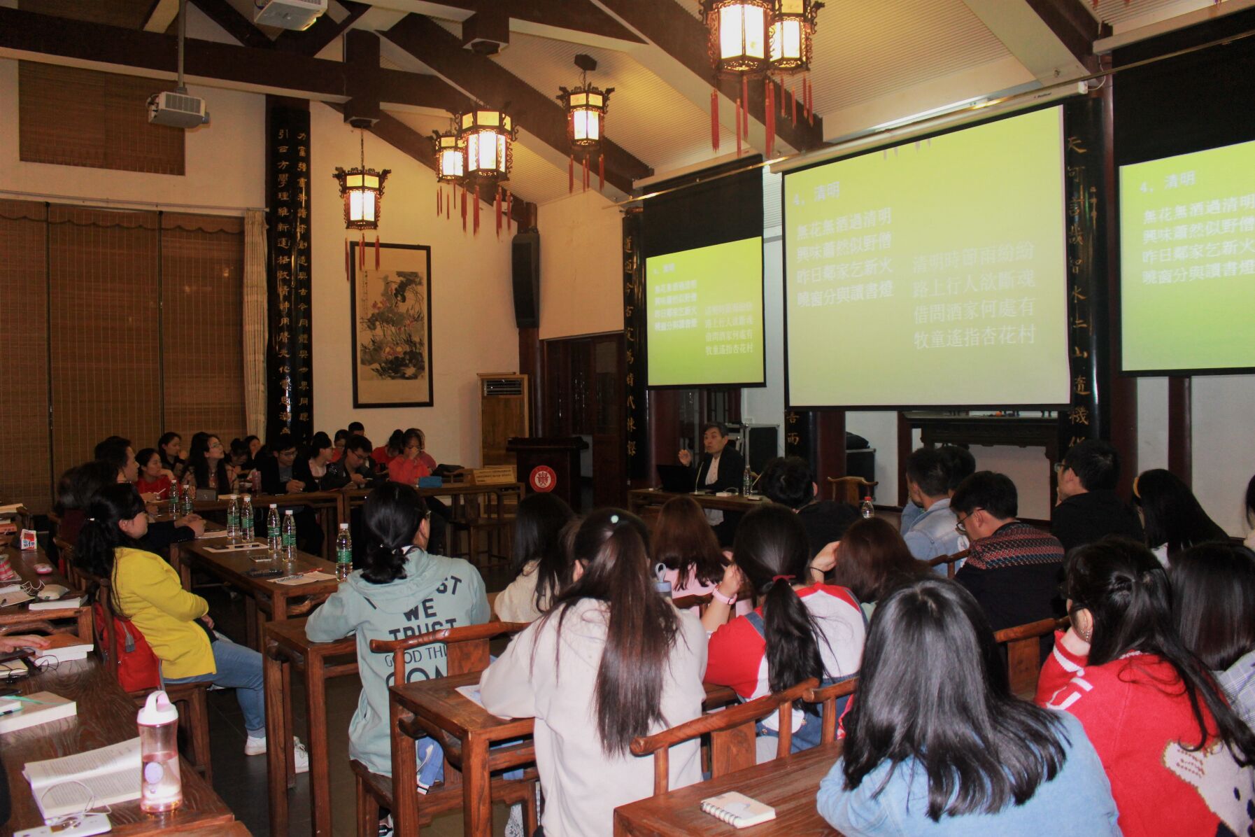讲座特邀华东师范大学胡晓明教授主讲“论宋诗与唐诗并驾齐驱讲座”。