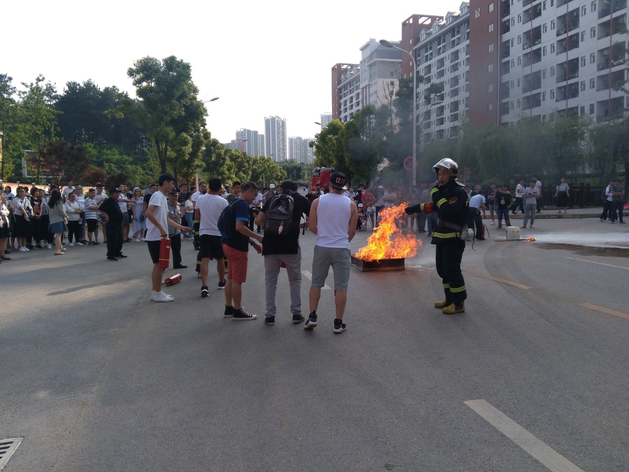 随后,为了让同学们对灭火器的使用有直观的了解,消防队员们邀请部分同学上场,指导他们正确的使用灭火器扑灭火电。