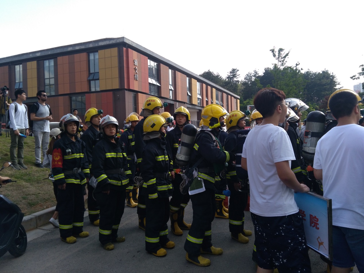 下午430时,演练开始。18栋宿舍开始散发出层层浓烟,消防车、救护车迅速赶到,展开救火工作。