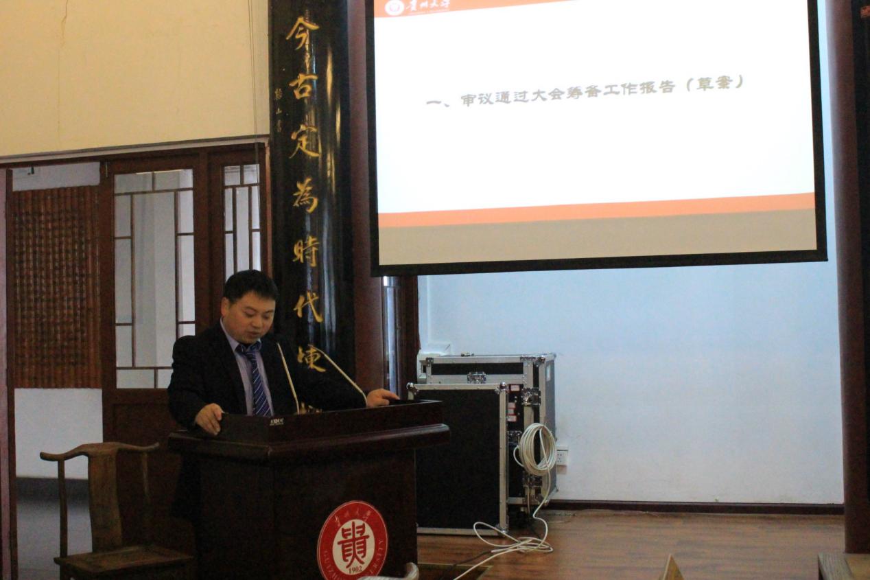 2018年10月26日上午,贵州大学文学与传媒学院第二次研究生团员代表大会暨第三次研究生代表大会在中国文化书院勉学堂顺利召开。贵州大学校党委研究生工作部罗勇部长、贵州大学文学与传媒学院党委书记罗卫刚、院长杨仁厚、党委副书记董蔚然、学生辅导员吴卿出席本次大会。多个校级组织、兄弟院校团组织、研究生会负责人以及文学与传媒学院研究生代表参加此次会议。本次大会分为预备会议和正式会议两部分。