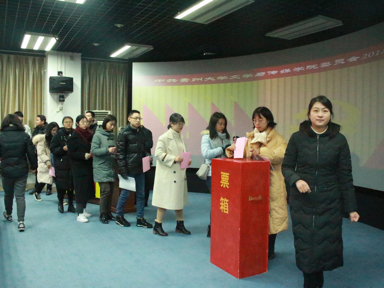 审议报告结束后,罗卫刚主持换届选举党员大会。选举之前,全体党员以举手表决方式通过了《中共贵州大学文学与传媒学院委员会2018年换届工作选举办法(草案)》,通过监票人、计票人名单。