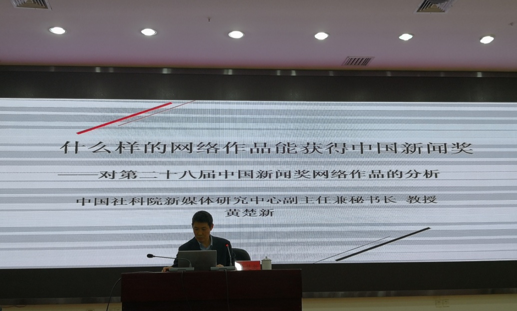 12月20日,中国社会科学院新闻与传播研究所新闻学研究室主任、第二十八届中国新闻奖第十五届长江韬奋奖专家评委、中记协新媒体专委会委员黄楚新教授,澎湃新闻副总编辑黄杨一行走进“多彩贵州传媒大讲堂”,分别围绕什么样的网络新闻可能获得中国新闻奖、第二十八届中国新闻奖一等奖作品《天渠:遵义老村支书黄大发36年引水修渠记》采访、创作和获奖背后的故事与采编人员和师生进行了充分交流。