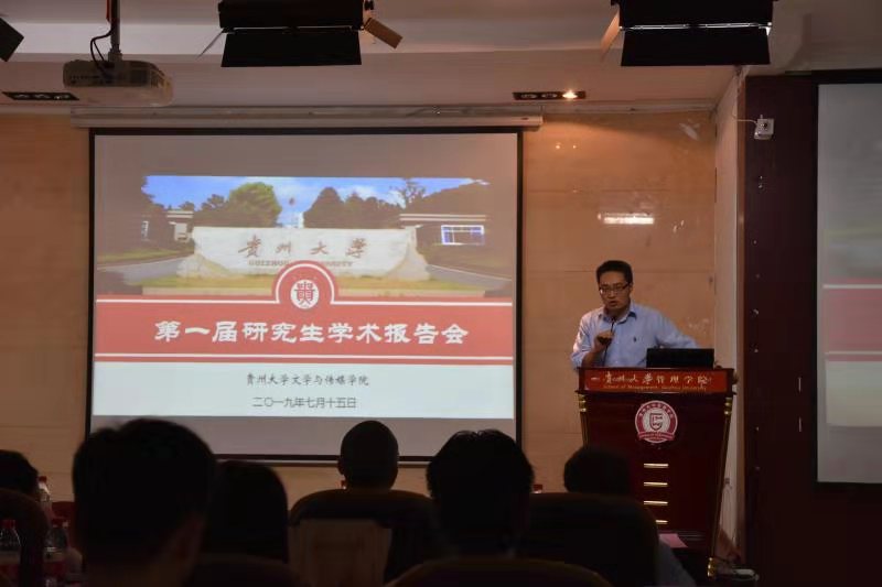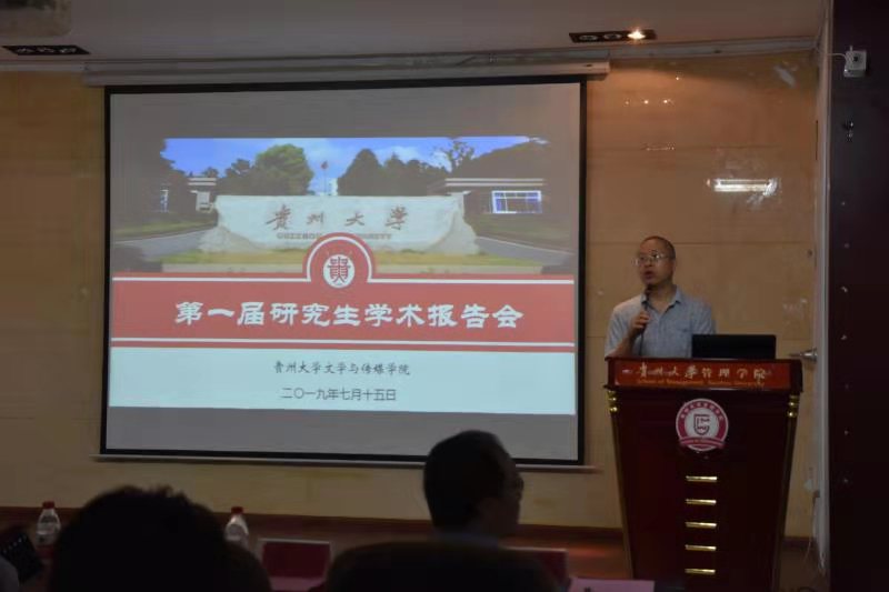 2019715上午9,贵州大学文学与传媒学院在管理学院报告厅举行第一届研究生学术报告会开幕式。文学与传媒学院党委书记李开学党委研究生工作部副部长张小彬,研究生院副院长杨瑞东,文学与传媒学院副院长谭德兴、副院长唐娟以及部分专家教授出席会议。