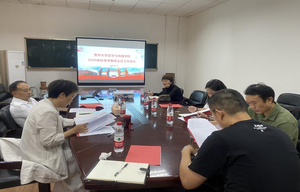 910日上午9:30,我院在人文楼202会议室召开2020年秋季学期班主任工作会议。学院党委书记李开学、副书记董蔚然、副院长唐娟、学生科各辅导员及各班班主任参加会议。会议由董蔚然主持。学院党委副书记董蔚然传达《文学与传媒学院关于加强2020年秋季学期学生教育管理的通知》,并对学院学生工作做通报和安排;会议讨论了《贵州大学文传学院学生突发事件应急处理工作方案》(讨论稿);学院党委书记李开学对学院新学期学生管理工作提要求。