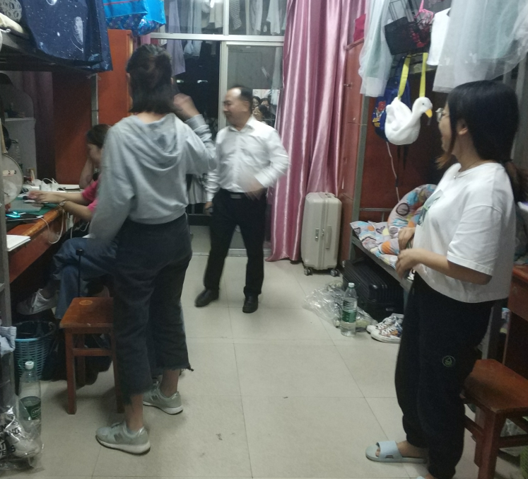 96日晚上8:30,院党委书记李开学、副书记董蔚然、学生科辅导员曹家鹏以及学生干部对2019级本科生宿舍进行走访。院领导和辅导员对同学们日常生活进行进一步了解,询问同学们加入学院的学习与生活情况,耐心回答同学们提出的各种问题。同时,对宿舍卫生与安全方面提出了要求,督促同学们共同营造良好的学习生活环境。