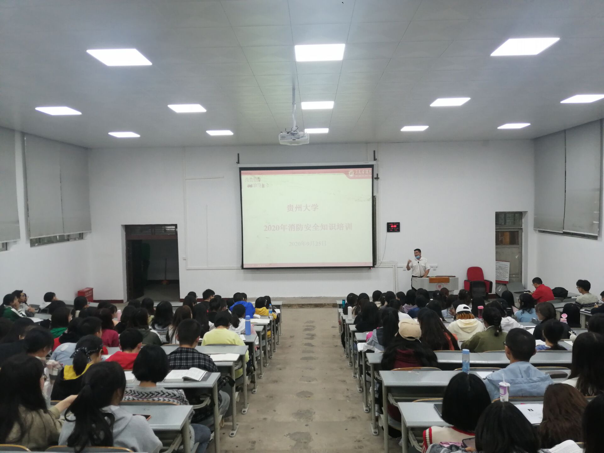2020年9月25日下午,贵州大学文学与传媒学院邀请到了贵阳卫民安消防知识宣传服务中心叶教官为我院学生开展消防安全知识培训会。文学与传媒学院党委副书记董蔚然、学生科副科长王婷婷、辅导员张健以及2018级本科生参加培训会。会议由辅导员张健主持。