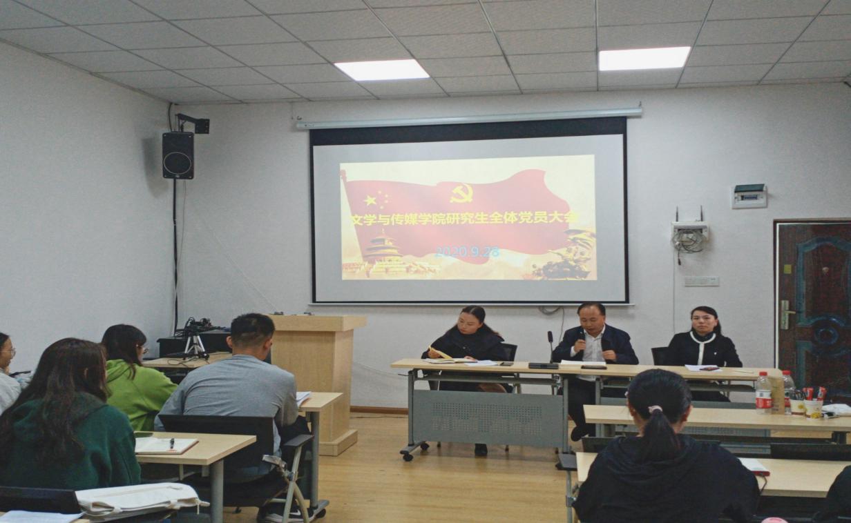 2020年9月28日下午,贵州大学文学与传媒学院研究生全体党员大会在人文楼103会议室召开。院党委书记李开学、院党政办公室主任方芳出席本次会议。会议由文学与传媒学院研究生思想政治辅导员、研究生第二党支部书记姬丹主持,全体研究生党员参加。