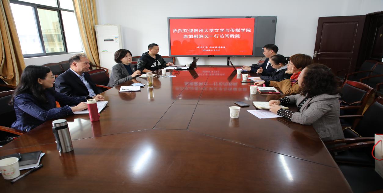 11月5日至11日,为全面提高我院新闻专业学生培养质量,促进“部校共建”工作,贵州大学文学与传媒学院组织部分教师赴中西部四所高校考察部校共建与学科建设工作。副书记董蔚然一行4人赴西北大学新闻与传播学院、陕西师范大学新闻与传播学院,副院长唐娟一行5人赴湖北大学新闻传播学院、江西师范大学新闻传播学院,考察交流队伍就部校共建工作、学科建设工作进行交流学习。