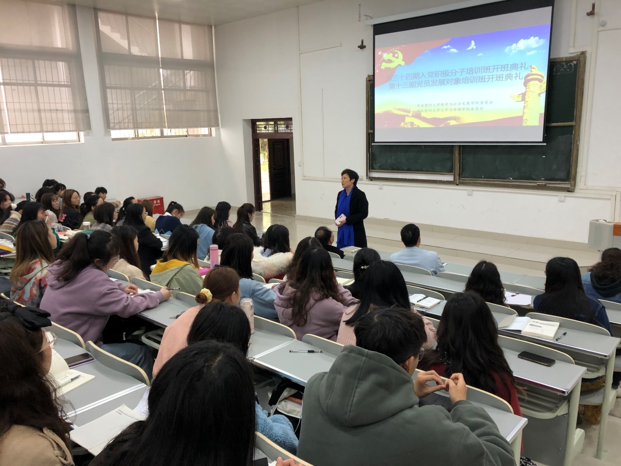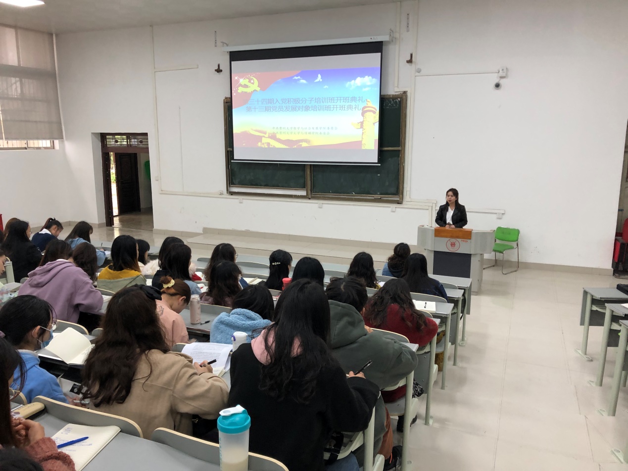 2021年4月19日中午,文学与传媒学院及哲学与社会发展学院于法学楼101DT教室举办了第十三期党员发展对象培训班暨第三十四期入党积极分子培训班开班仪式。文学与传媒学院党委书记李开学、哲学与社会发展学院党委书记周乐成、文学与传媒学院党委副书记董蔚然、哲学与社会发展学院副书记黄梅、文学与传媒学院党委组织员姬丹出席仪式,开班仪式由哲学与社会发展学院辅导员晏梦勋主持,文学与传媒学院及哲学与社会发展学院培训班全体学员参加会议。