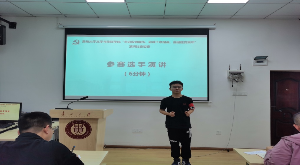 回首不忘来时路,阔步征程守初心。新时代青年大学生肩负新使命,任重道远,当学会历史思维,培养历史眼光,增强历史担当,明理增信,在缅怀追思中奋力前行,将个人理想追求融入党和国家事业之中,创造属于我们时代的新的辉煌。至此,贵州大学文学与传媒学院“牢记殷切嘱托、忠诚干净担当、喜迎建党百年”专题教育演讲比赛圆满落幕。