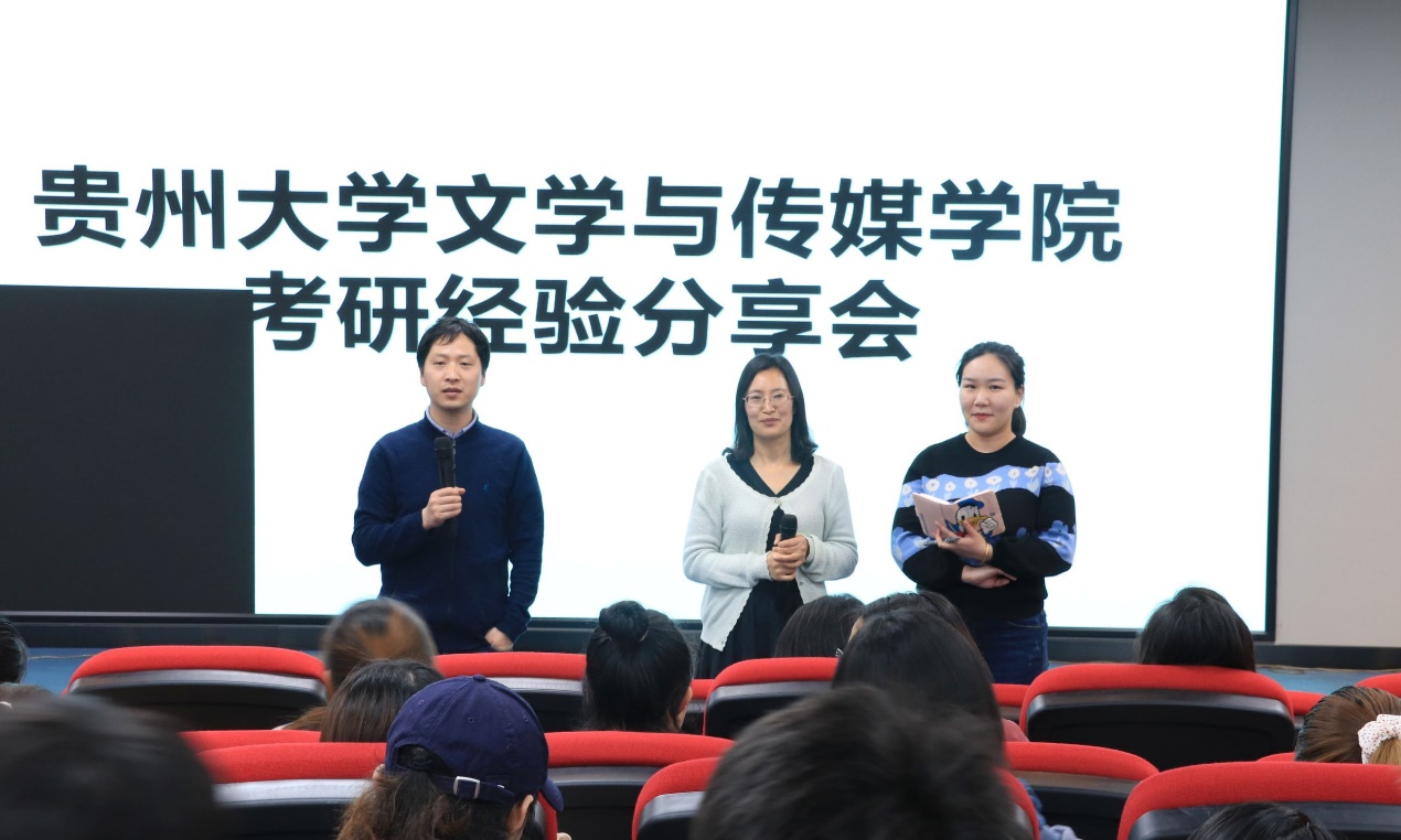 2021年4月21日晚上,贵州大学文学与传媒学院于慎思楼情景模拟实验室举行了18级、19级新闻专业考研分享会。本次分享会由新闻系主任张波副教授主持,新闻系高焕静、贾梦雨老师出席,18级、19级新闻学本科生50余人听取了讲座。