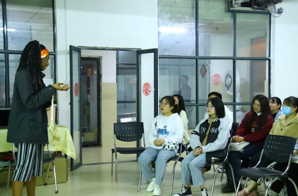 427日晚,文学与传媒学院30名本科生参加国际教育学院外语学习园地第三期活动与来自尼日尼亚的留学生刘雨佳进行文化交流。