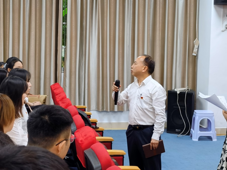姬丹从共产党员要理想信念坚定、共产党员要认真履行党员义务和共产党员要在学习生活中模范带头三个方面对预备党员同志进行了深入的讲解。