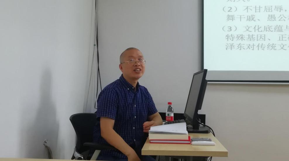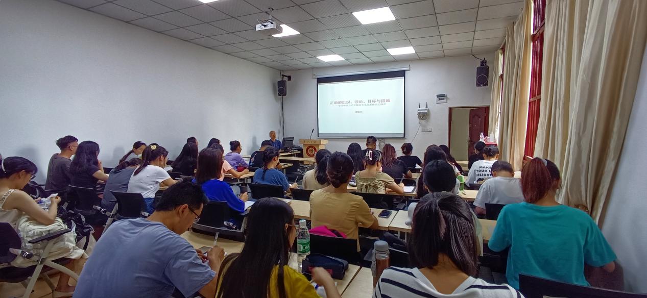 为深入开展党史学习教育、“牢记殷切嘱托、忠诚干净担当、喜迎建党百年”专题教育,2021年6月25日下午,文学与传媒学院党委副书记、院长谭德兴在人文楼103教室为本科生第一党支部同志讲授“正确的组织、理论、目标与措施——学习中国共产党新民主主义革命史之体会”党史教育专题党课。