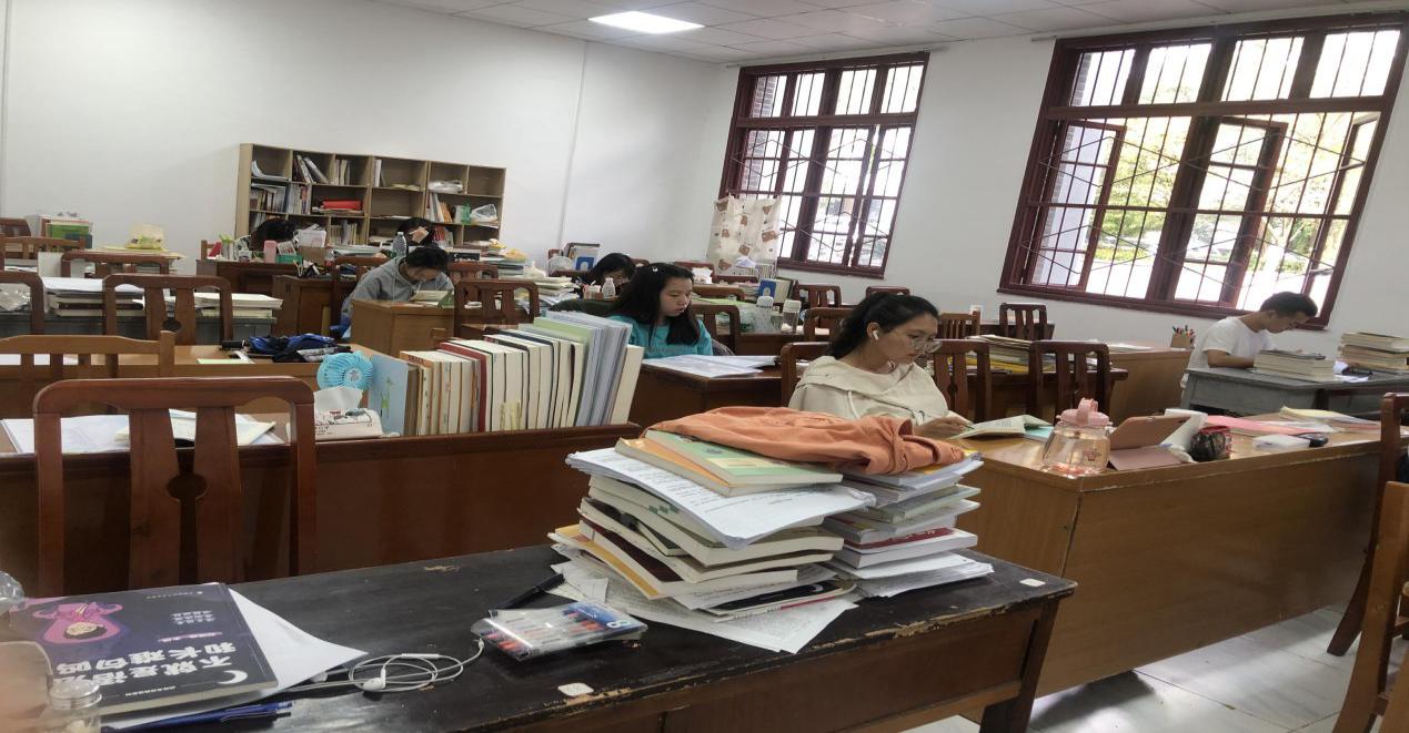 学院领导班子克服办公用房紧张、办公经费紧张的现实困难,为学生开辟出2间自习室和5间教师工作室,共提供80余个自习座位和50余个教师工位,改善了学生学习环境、保障了教师工作环境,位于人文楼一楼的学生自习室与位于二楼的教师工作室相呼应,既便于学生求学询问,也方便老师释惑答疑,师生融合共同努力,营造扎实奋进的学习环境。