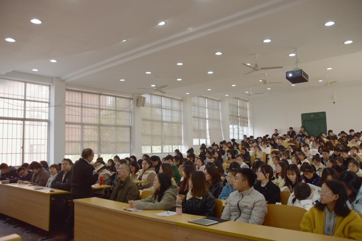 谭德兴作动员讲话。他指出,我院的教学目标是高质量培养人才,他就本科生一直以来“要不要考研”“如何考研”“如何保研”三个问题做出了解答。他希望2019级学子要做好充足的准备,合理选择考研学校、专业和导师。