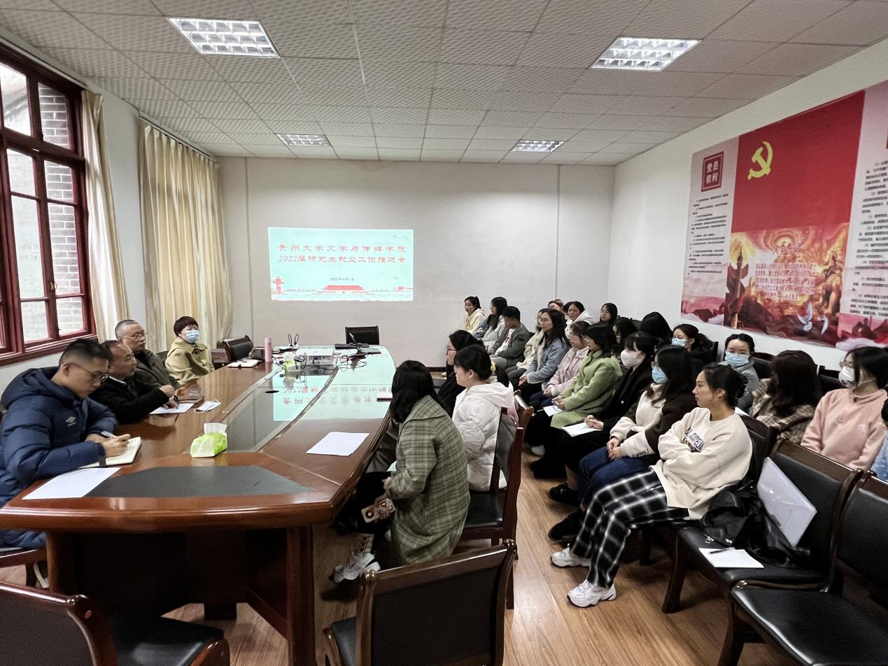 2022年4月1日下午3点,文学与传媒学院在人文楼204会议室召开2022届研究生就业工作推进会。学院党委书记李开学、副书记院长谭德兴、副书记副院长唐娟、研究生思政辅导员张健以及学院2022届全体在校研究生参加会议。