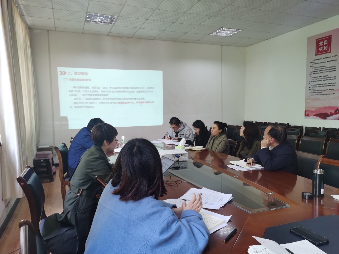 2022年4月19日中午1点,文学与传媒学院于人文楼204开展学生疫情防控及安全稳定工作会议,学院党委书记李开学、副书记副院长唐娟、副院长赵永刚、各班班主任以及学生科全体辅导员出席会议。会议由学生科科长王婷婷主持。