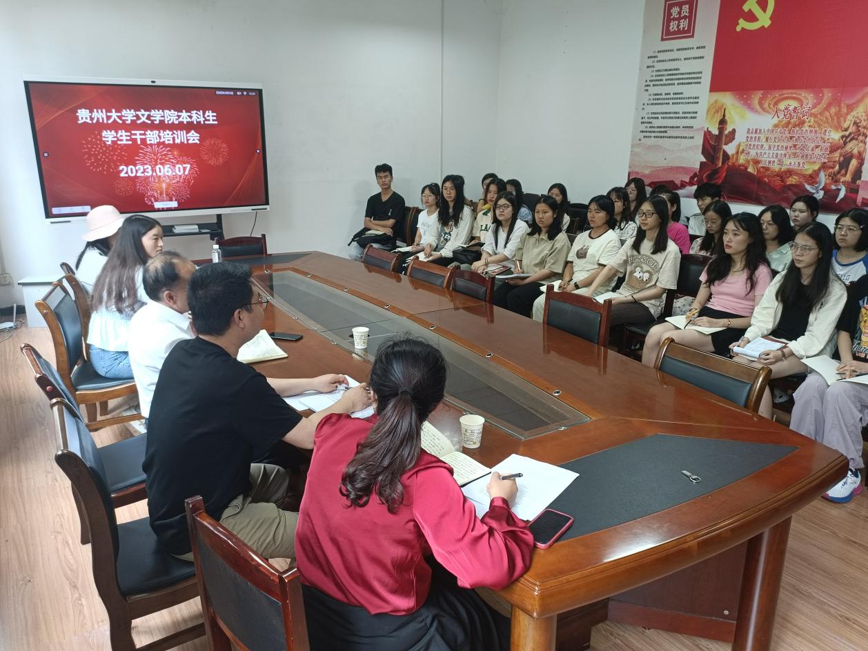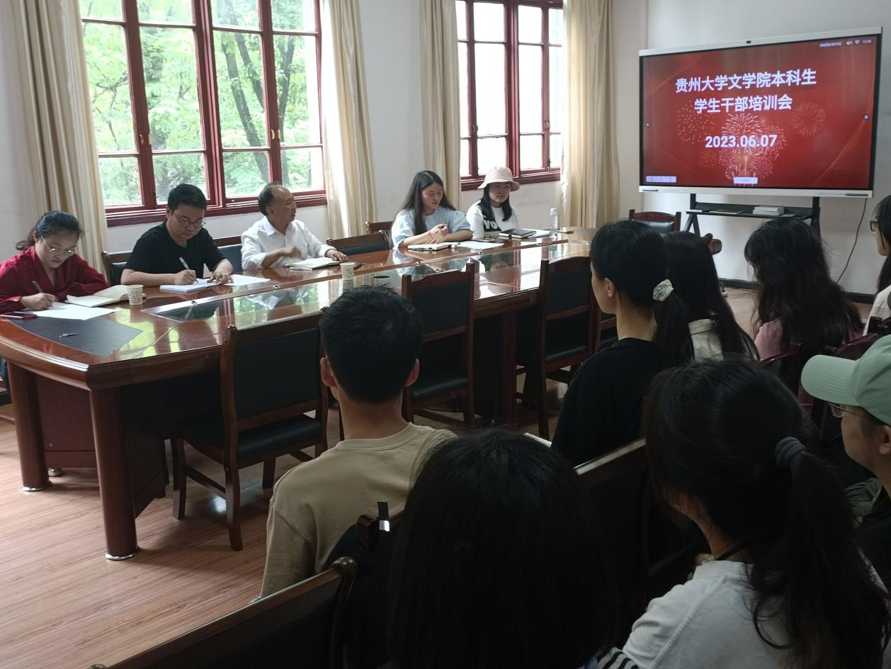 为深入学习贯彻党的二十大精神,提高学生干部的思想认识、工作能力,做到全方位育人,贵州大学文学院于6月7日在人文楼204召开本科生学生干部培训会。学生辅导员罗兰、曹家鹏,兼职辅导员曲诗语、徐真芳和2020级、2021级学生干部参加,院党委书记李开学参加并讲话。