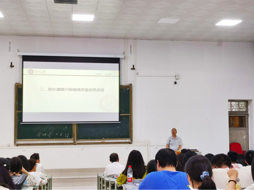 谭德兴进行继续深造动员讲话。首先,他对2020级本科生的考研意向表示肯定,鼓励同学们坚定考研决心,积极报考本校、本院,在学业上继续深造。其次,他建议同学们在备考中要根据自身状况采取有效备考措施,要做到多看、多练、多记、多写,以达到精准、高效的复习效果,同时,提醒同学们在备考过程中要张弛有度,有序规划。最后,他表示对2020级本科生考研情况充满信心,相信同学们能够通过自己的努力取得良好成绩。