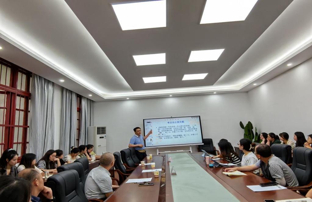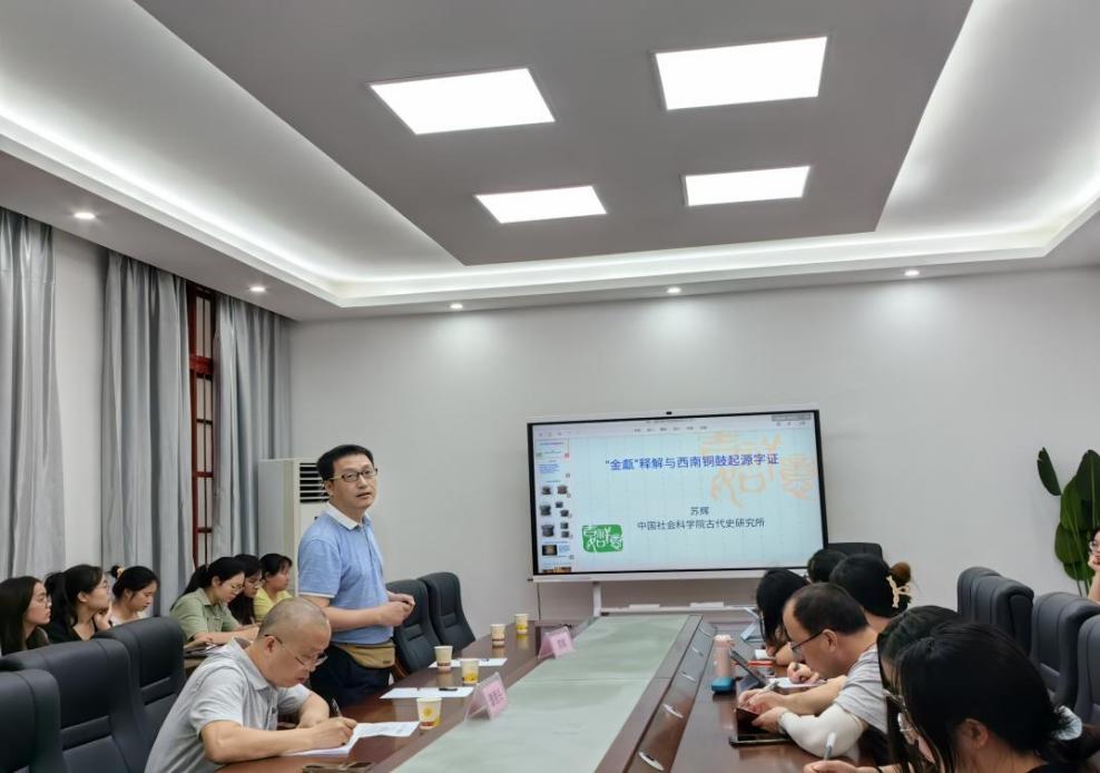 2023年7月14日上午,由贵州大学人文社科处主办,贵州大学文学院承办的贵州大学总第919期“溪山论道·文科讲坛”(2023年第80期)在贵州大学文学院104会议室举行。中国社会科学院古代史研究所、《中国史研究》杂志社副主任、《中国史研究动态》副编审苏辉主讲“‘金甗’释解与西南铜鼓起源的字证”。贵州大学文学院院长谭德兴教授主持,贵州大学历史与民族文化学院副教授闫平凡以及贵州大学文学院部分硕士生、本科生参加。