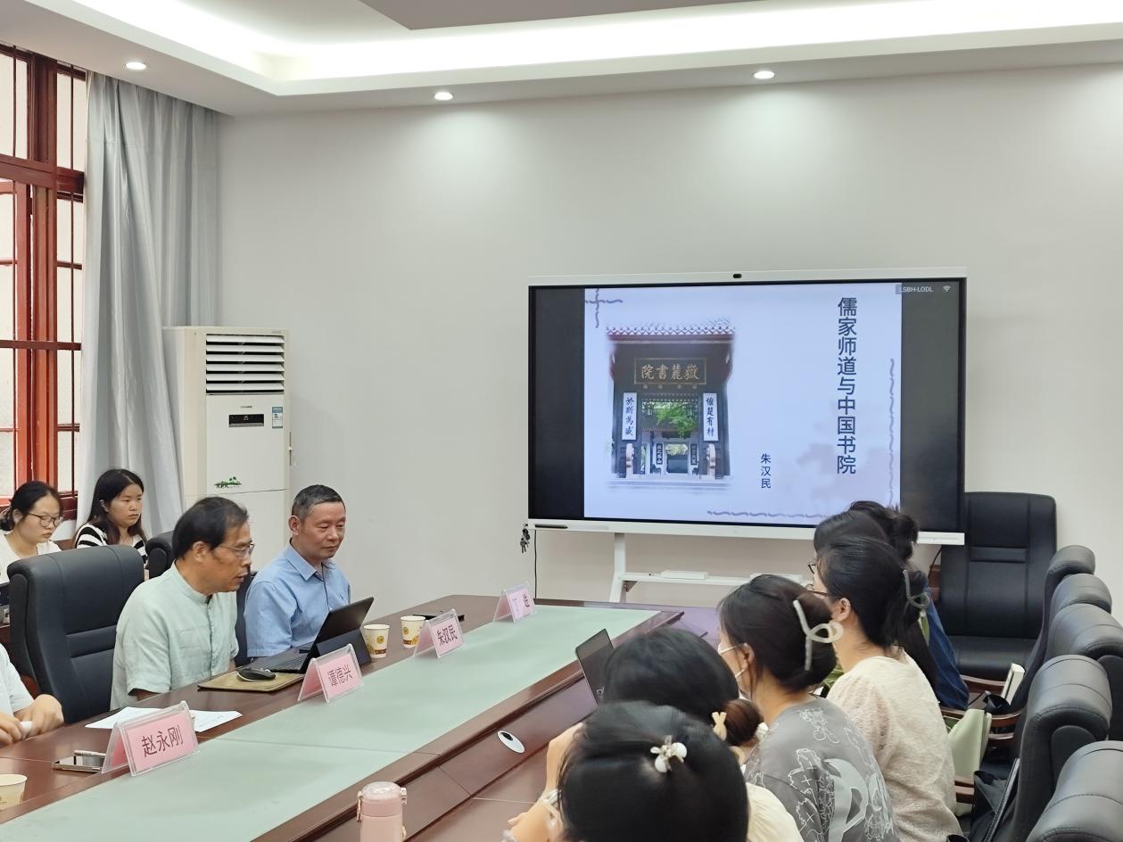 朱汉民教授首先指出儒教是中华文明最核心的部分,而书院精神的源头就是儒家师道精神。朱教授认为相比其他宗教文明,儒教文明具有其独特性。一是儒教的“教”不是宗教,而是教育;二是儒教的文化使命与儒者作为师的文化使命相联系。朱教授对师道精神进行阐释。无论是孔子推崇的“为己之学”,还是孟子所讲“自得之学”,均强调人的自我教育,重视个人文化素养、综合素质的全面发展。