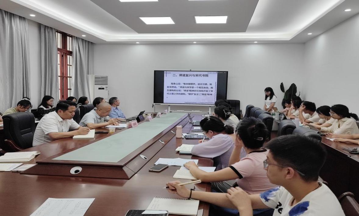 其次,朱教授结合师道精神对宋、元明清书院发展的情况进行梳理。宋代是书院创办的兴盛时期,师道、书院以及理学之间相互联系。朱教授提出“师道”精神引领和开拓了“理学”,“理学”则复活了“师道”精神。在论及师道与书院的关系时,朱教授以范仲淹、宋初三先生、朱熹等为例,讲述宋儒“以师道自居”,提倡恢复孔孟之道、积极创办书院的自觉担当。元明清是书院延续与发展的时代,以许衡为代表的官学与以刘因为代表的私学,呈现出“不如此则道不行”与“不如此则道不尊”的两种不同的师道精神形态。明代王湛心学也将书院作为心学传播的基地。朱教授特别提到王阳明在贵州龙场悟道后,创建的龙岗书院、贵阳文明书院,王阳明的心学思想也是对儒家师道的传承。清初的实学思潮、乾嘉汉学思潮、晚清新学思想,都与书院教育与师道传承有密切关系。