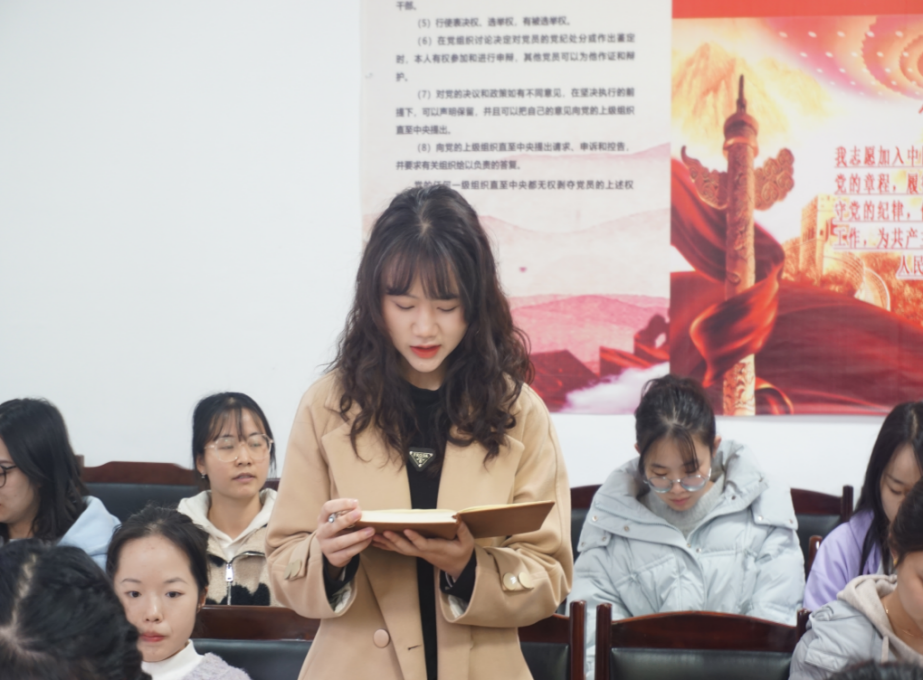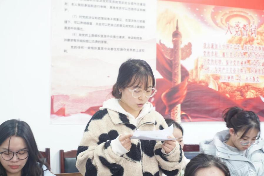 团总支书记杜瑶瑶从实践角度介绍了习近平文化思想指导下取得的文化成果:一是国民素质得到了普遍提高;二是意识形态领导权得到加强;三是中国与世界文化互鉴交流得到促进与发展。同时领学了2023年6月2日习近平总书记在文化传承发展座谈会上的讲话。