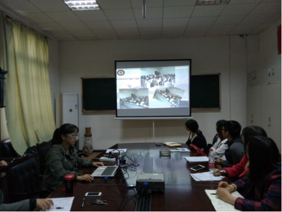 在交流环节,这次会议与以往不同的是增加了班级活动与班级工作经验的分享展示内容。新闻151班、中文152班给在座的领导以及学生干部展示了两个班的团生活和微讲座情况。其中新闻151班以视频方式展现了班级开展——同学们热心奉献,学雷锋做好事在校园内做志愿服务的。
