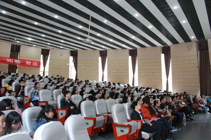 团委网站讯(记者 安洪锋 报道/摄影 董长虹)316日下午,由我校文学与传媒学院(以下简称“文传”)主办的校园生活分享会在西校区圆形报告厅举行。文传学院党委书记罗卫刚、副书记董蔚然、副院长谭德兴、班级导师杨世海、姚亮、方芳、张波、学生辅导员王婷婷、学生科老师吴卿、2016级全体学生出席会议。会议由四个环节组成。
