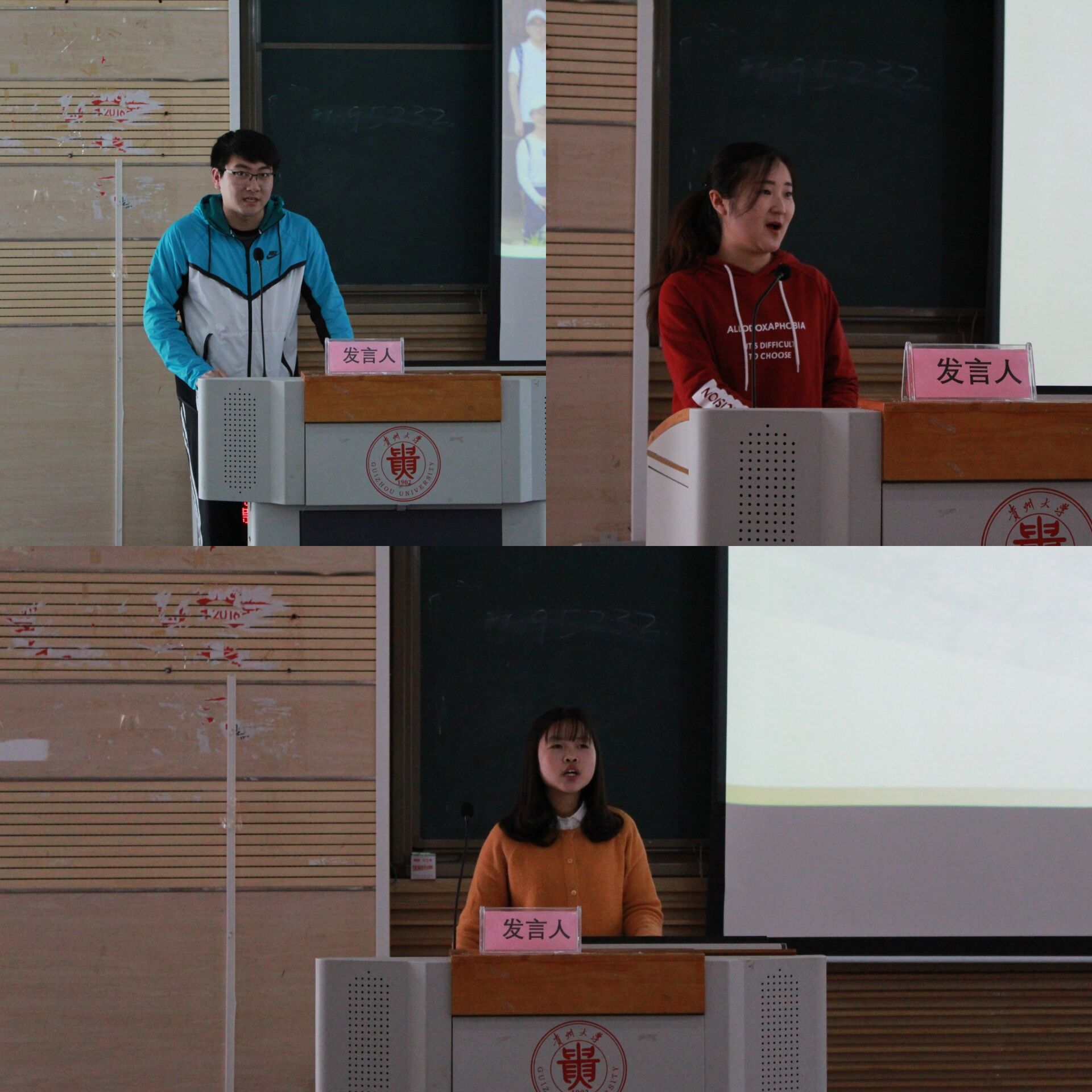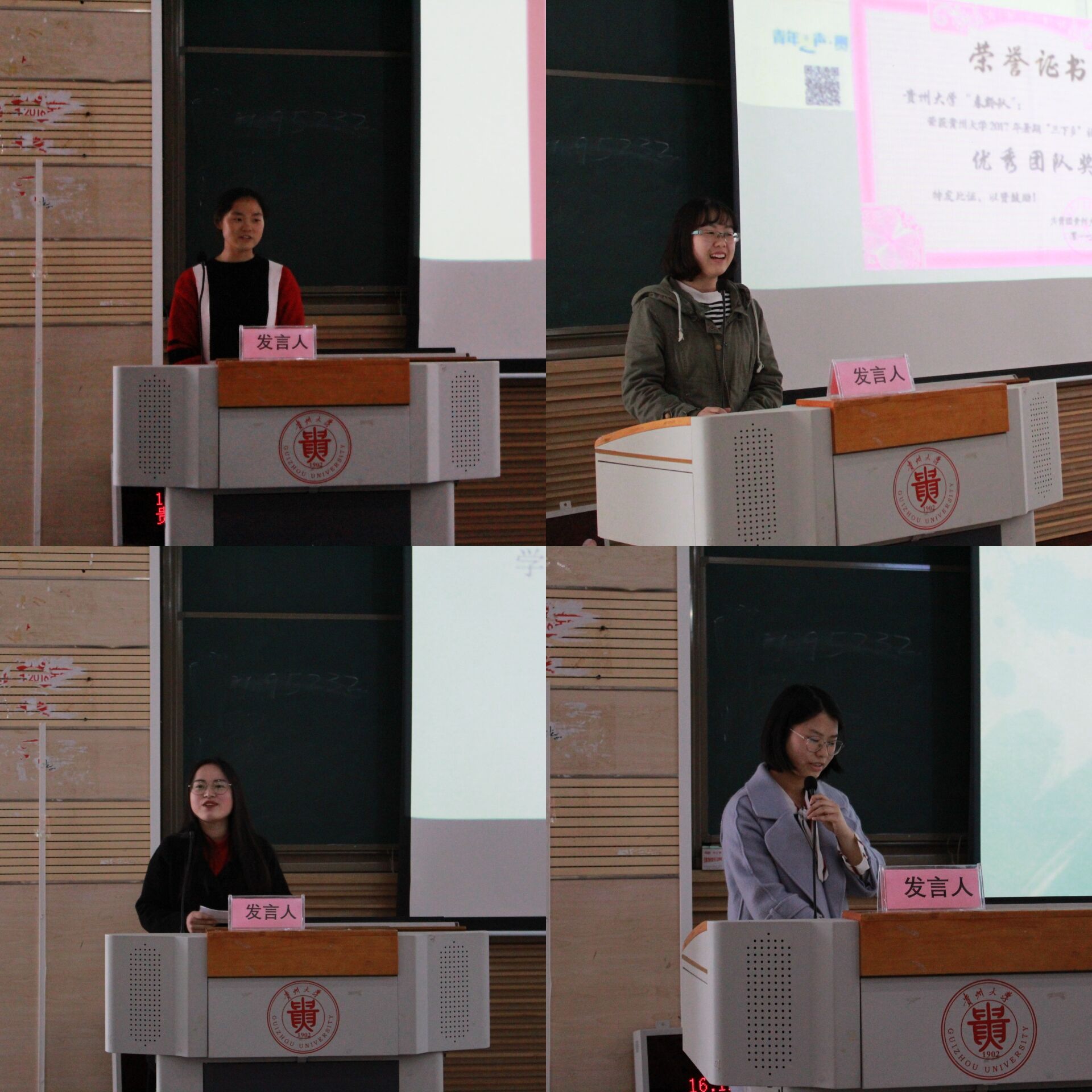 第二环节以第二课堂为主题。优秀学生干部吴明硕、文体积极分子吴明溪为同学们进行第二课堂介绍与分享。吴明硕介绍了他参加的各种校园活动,“贵州大学辩论赛”是他觉得最重要的活动之一,辩论可以提高思辨逻辑、语言组织能力。他认为第二课堂就是“把知识变成常识”。吴明溪给同学们分享的题目是“从小我走在大我的路上”,她参加了很多活动,得到了很多证书,但她认为最重要的是结识了很多小伙伴。
