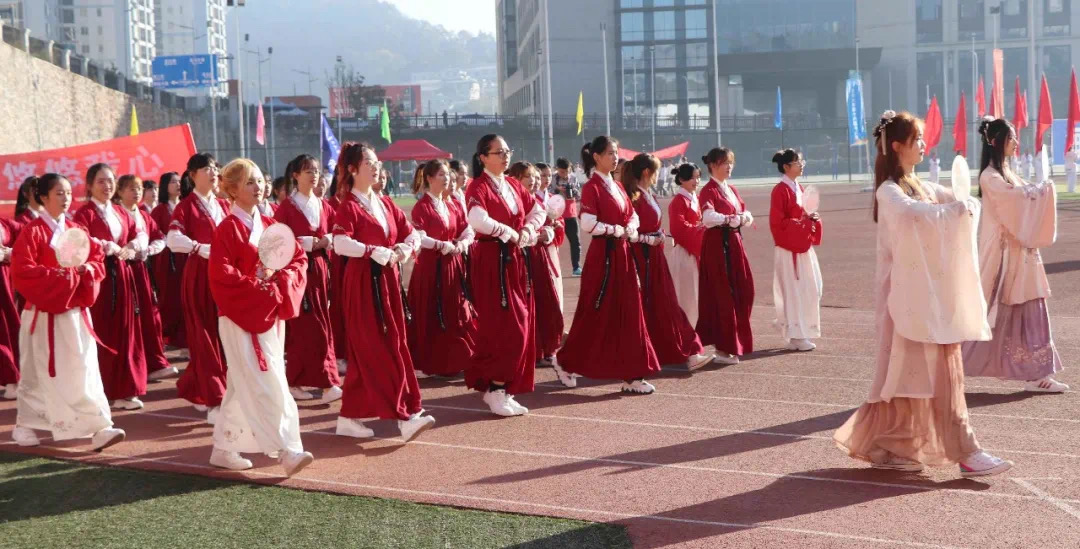 11日上午,全校各学院共40余个方阵参加了开幕式表演。入场仪式接近尾声时,我院代表队的出场吸引了广大师生目光。他们身着汉服,迎着朝阳,迈着整齐的步伐前进。