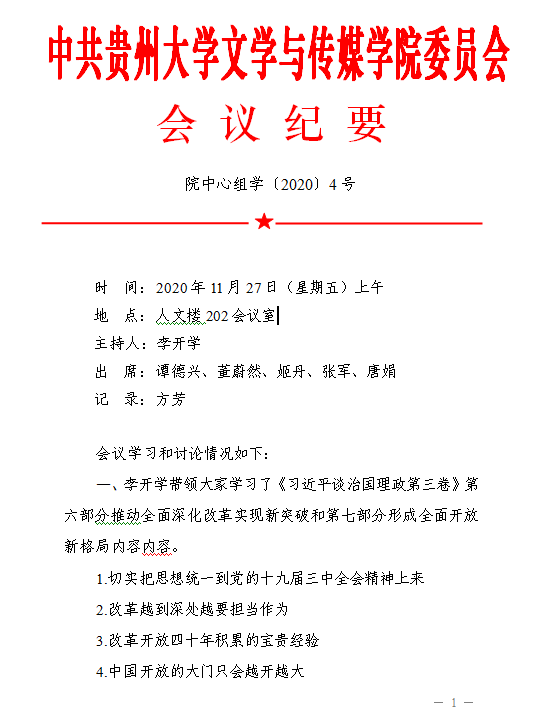 文学与传媒学院召开党委理论学习中心组学习