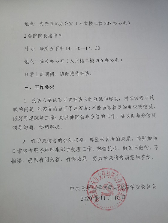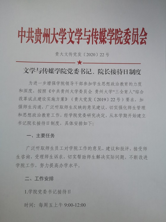文学与传媒学院党委书记、院长接待日制度