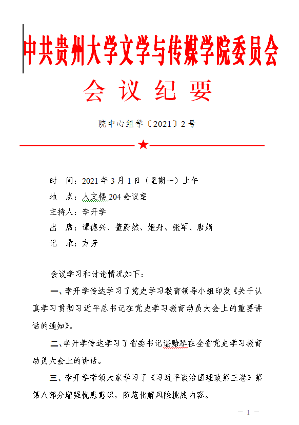 文学与传媒学院召开党委理论学习中心组学习