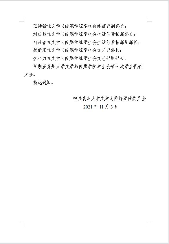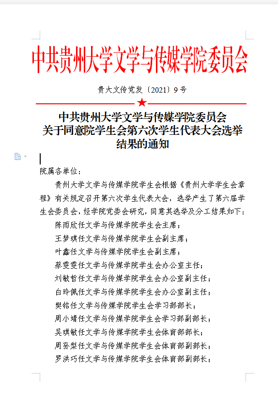 关于同意院学生会第六次学生代表大会选举结果的通知