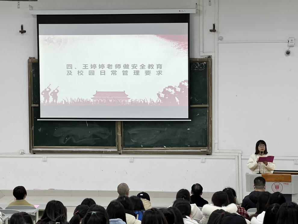 王婷婷向同学们强调安全教育及校园管理要求,强调日常生活中要注意防火、防盗、防骗、防溺水、防交通安全事故、防食品安全事故等,当前疫情形势仍然严峻同学们要提高新冠肺炎疫情防控意识,佩戴好口罩,坚持每天按时健康打卡