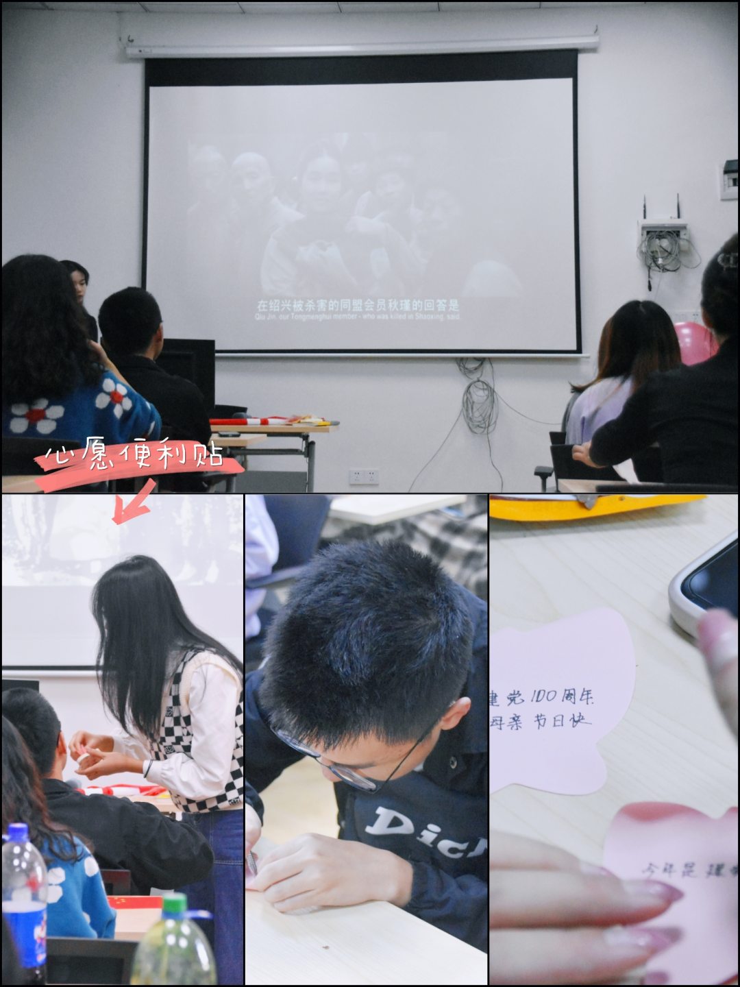 心愿便利贴,同学们写下了对祖国繁荣昌盛的美好祝福。