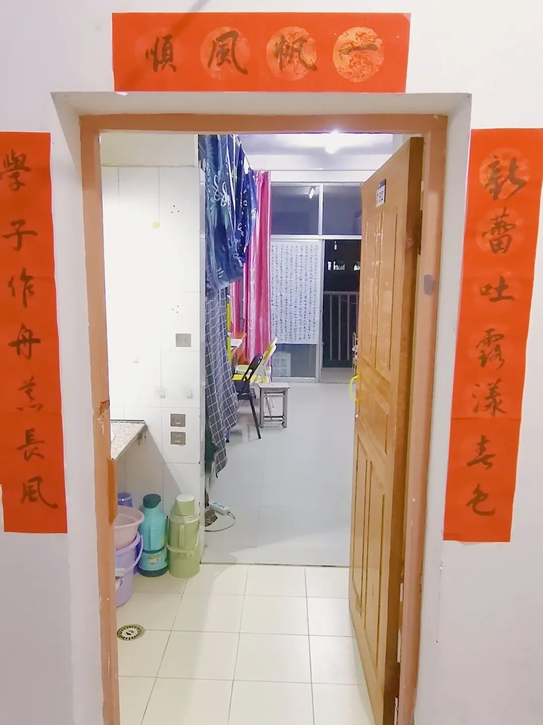 宁馨斋,取自宁静温馨之意,体现出了我们寝室安静温馨的学习和生活。平时大家自觉遵守寝室规定,学习的时候,互相营造了良好的安静的学习氛围。休息时间,大家会一起聊聊天天,分享一下彼此生活中的趣事和困扰。周末会去聚餐和散步,增进室友间的感情。我们一起去买了绿植,小小的绿植给寝室增添了生机,也让室友们保持着乐观的心态,幸福快乐的学习生活。寝室里张贴了室友们的书法和画作,让我们一直在书香的世界中探索。还在门外贴了对联“学子作舟慕长风,新蕾吐露漾春色”,鼓励我们脚踏实地,志存高远,终会有长风破浪时。