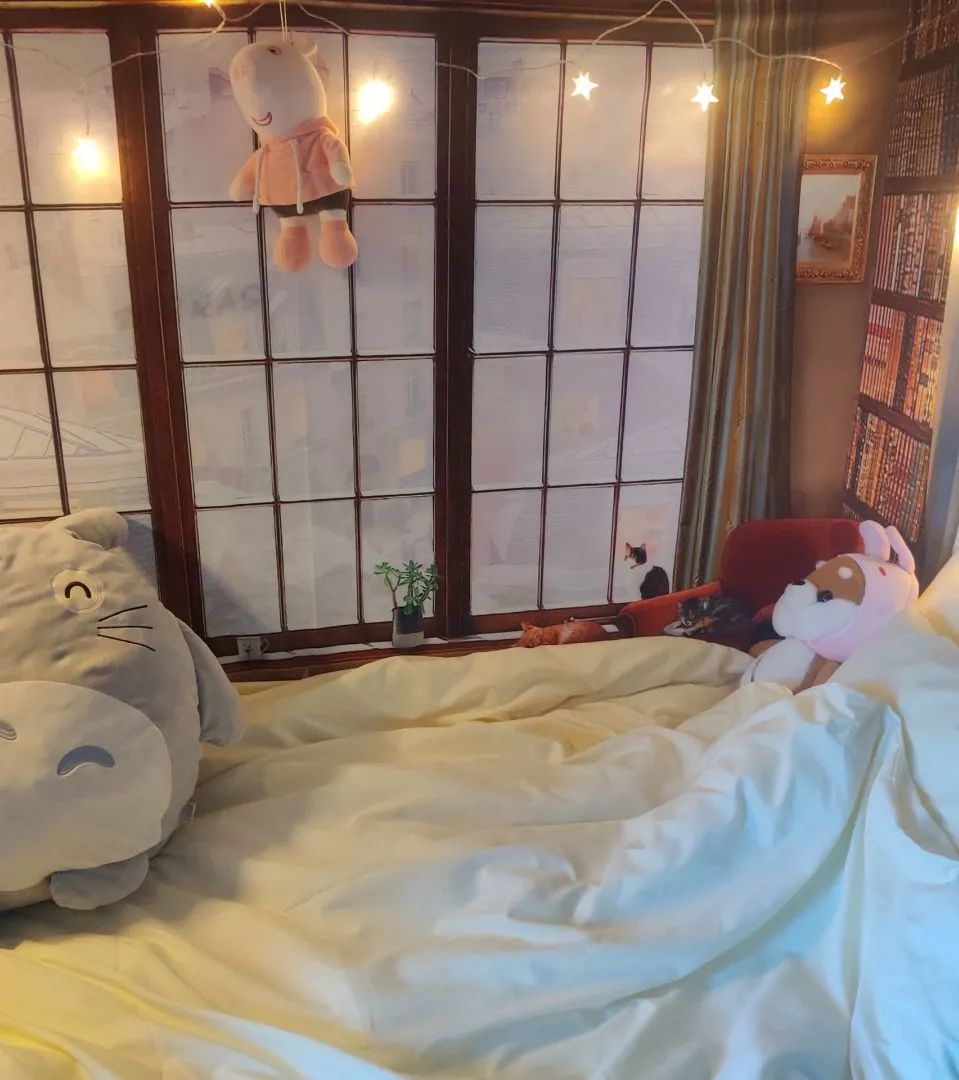 走进寝室,打开窗帘,风摇曳过多肉,略过吊兰的身影,光照着窗台墙上的斑驳痕迹,这是时代的传递,这是自然的呼唤,仿佛回到了大自然,给人如沐春风之感!正所谓“南方有佳人,文雅而独立。”