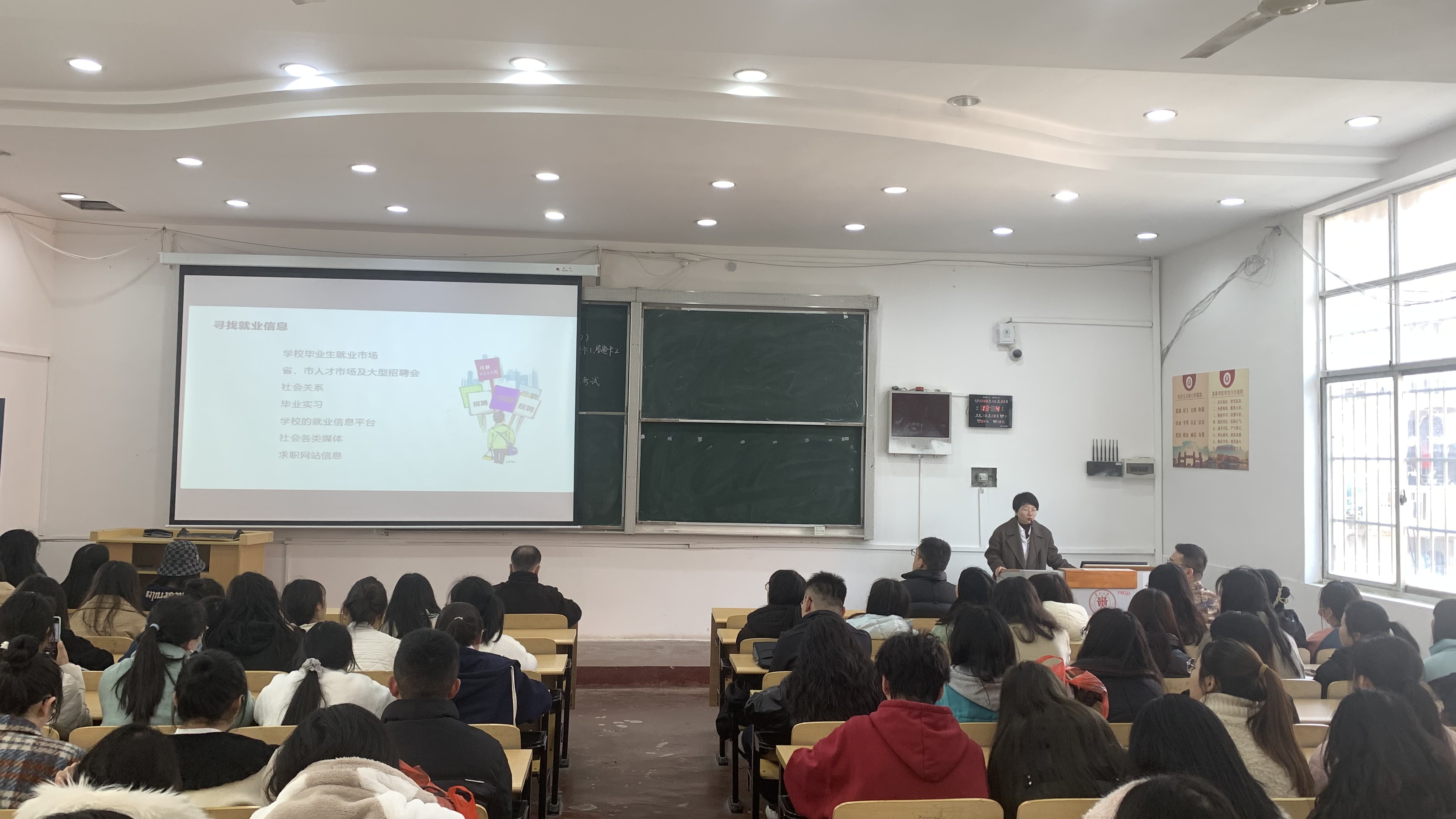 党委副书记、副院长唐娟针对就业做指导。她结合我院毕业生实际情况及近年来的就业环境,从就业地区、就业取向、平均薪资三方面做具体分析,指导学生做正确、合理的择业选择,并提醒同学们要及时关注就业信息,进行及时、有效地规划,顺利找到适合自己的工作。