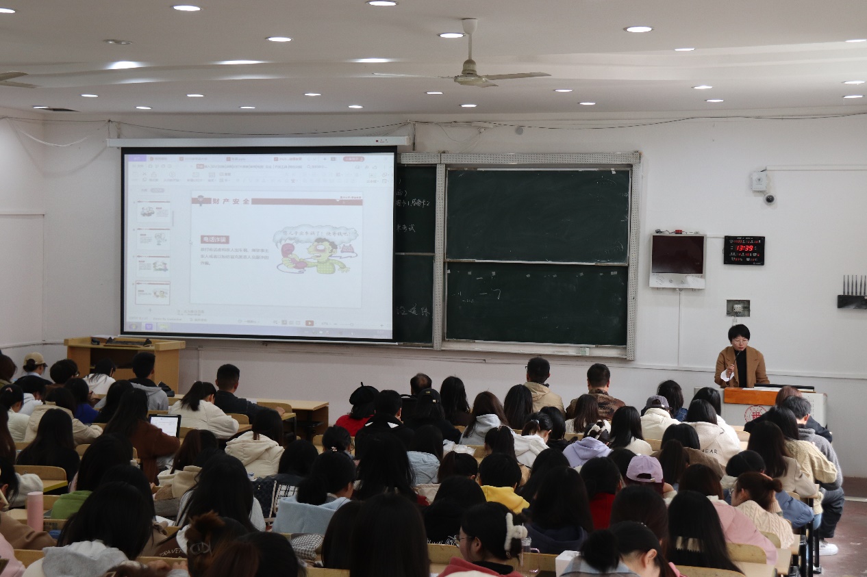唐娟进行安全教育。她提醒同学们:财产安全方面,要提高警惕,有效防范网络诈骗,妥善保管贵重物品;消防安全方面,要注意寝室安全,严禁使用违规电器;人身安全方面,严禁下河游泳,外出活动时要时刻注意自身安全。