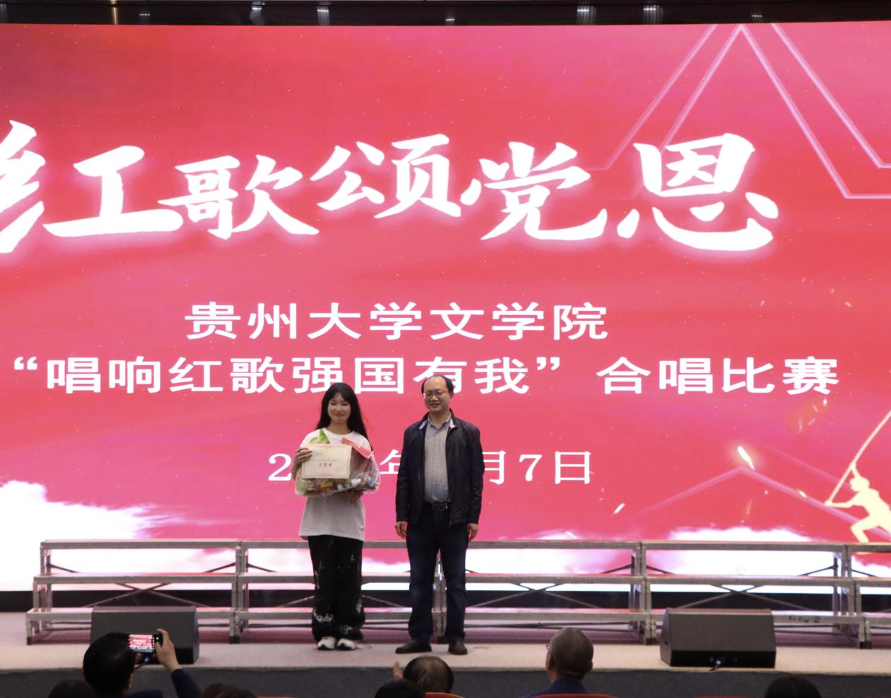 贵州大学文学院“唱响红歌强国有我”合唱比赛圆满落幕。红歌会是一场无比生动的爱国主义教育,以红歌为媒介,感受党的光辉历程,领悟红色文化,文学院学子在歌声中更加坚定了信念,更加强化了争做全面发展人才的思想,将为学院、学校高质量发展,为实现中华民族伟大复兴,推进中国式现代化而努力学习。