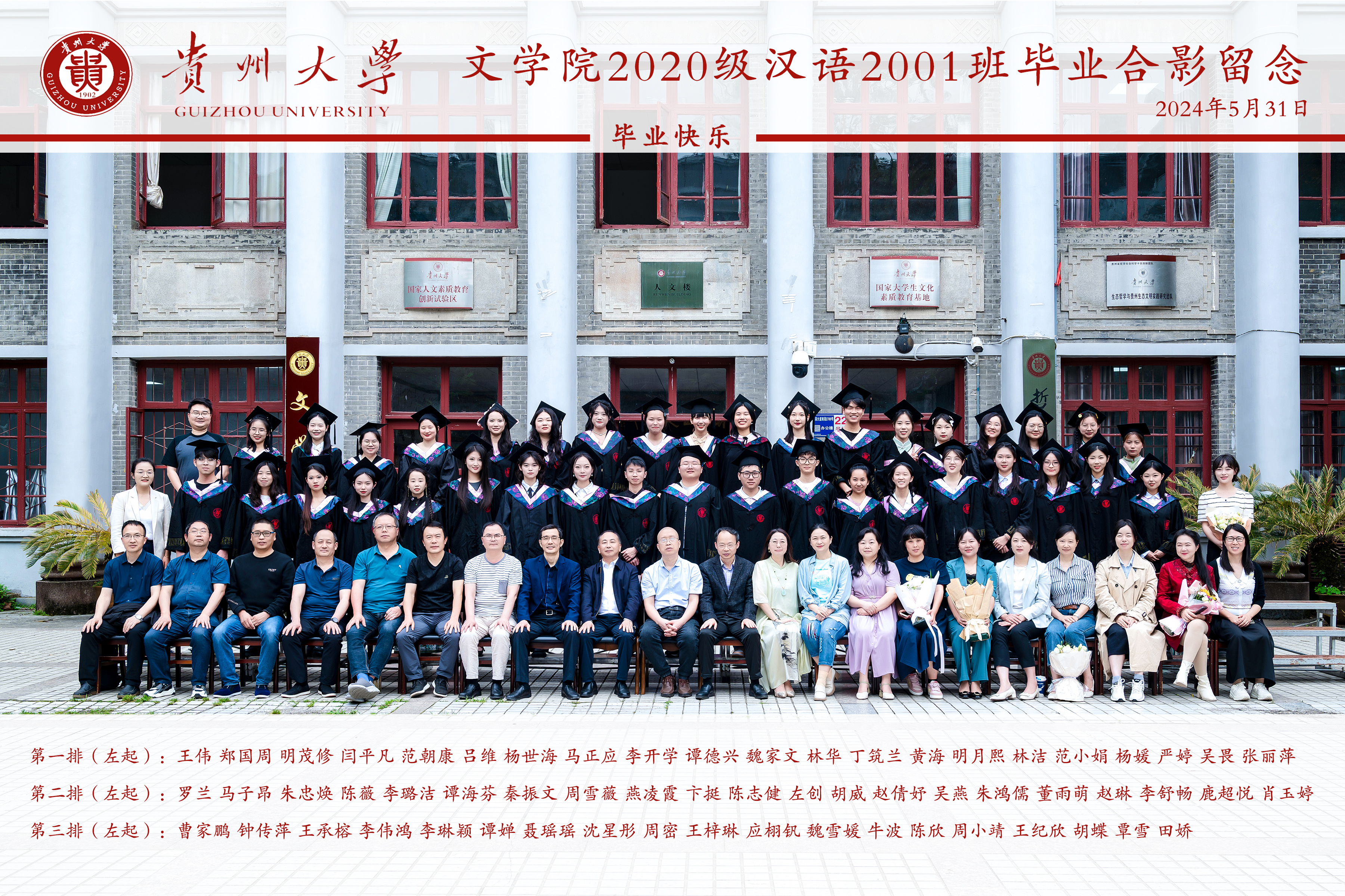 文学院2020级汉语2001班毕业合影留念
