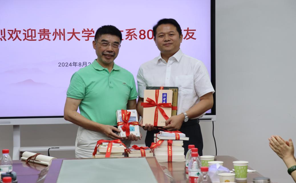 座谈会上,校友们向文学院赠送书法、书籍,表达对母校衷心的祝愿。并向原任课老师赠送礼品,表达对老师的感恩之情与衷心祝福。