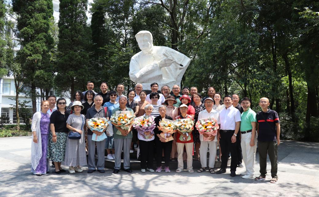 座谈会后,校友们纷纷到人文楼门口拍照留念,倾诉思念之情、记录美好时刻,最后集中来到了鲁迅像下合影留念。