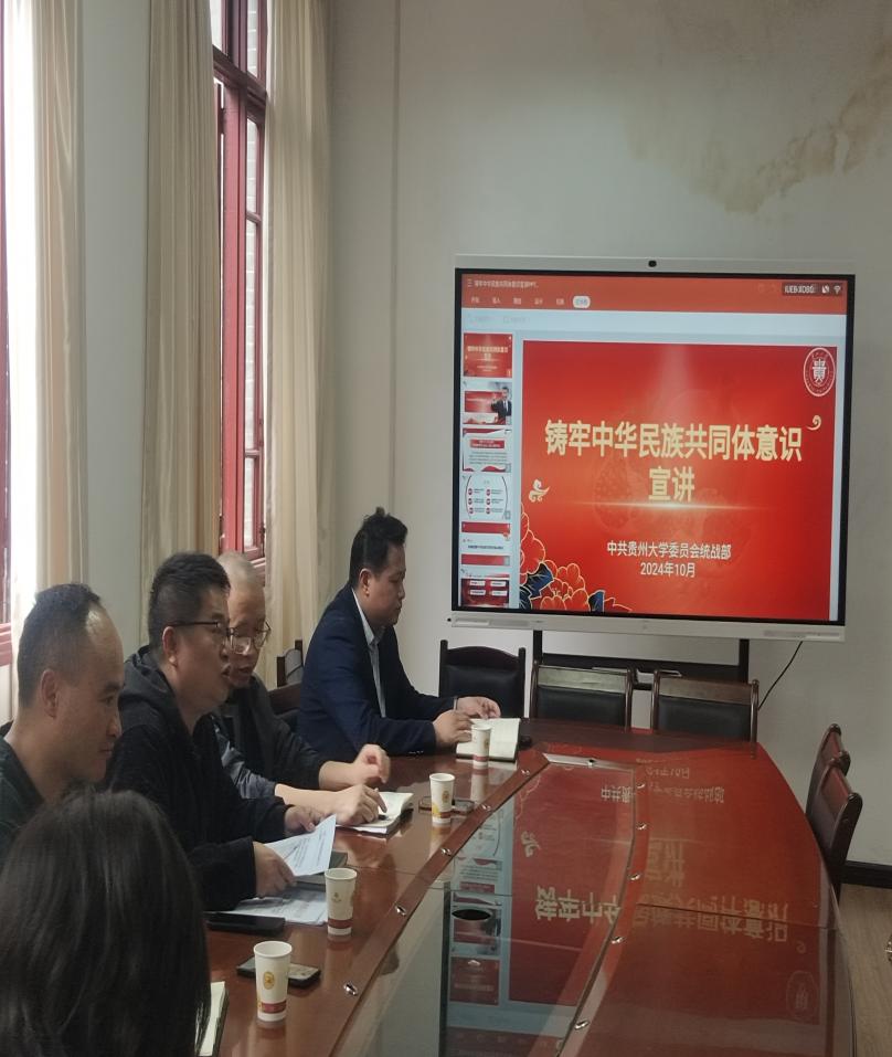 2024年10月15日,文学院党委书记陈爱东在人文楼204会议室进行铸牢中华民族共同体意识为主题的宣讲。院长谭德兴、副院长赵永刚、组织员周贤军及学院教职工共40人参加了本次宣讲。